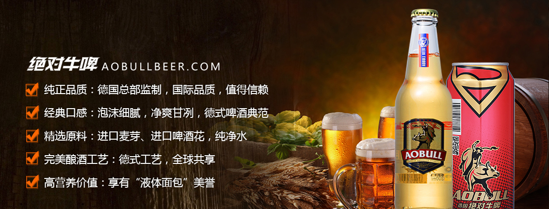 AOBULL绝对牛啤酒是德国久负盛名的啤酒品牌,同时也是德国啤酒节的 啤酒经典品牌,进入中国后,改为中国年轻消费者所认同!